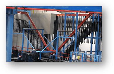 Continuous conveyor painting to provide durable, weather-resistant finishes on scaffolding products.